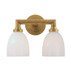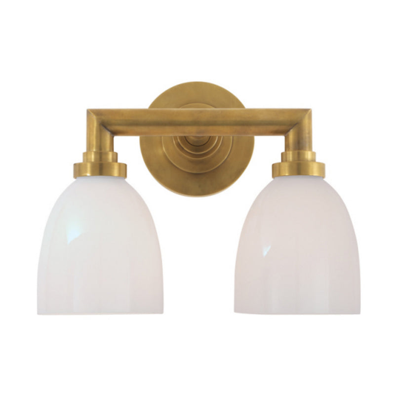 Chapman & Myers Wilton Double Bath Light in Hand-Rubbed Antique Brass with White Glass Wall Light W13" x H10.25"