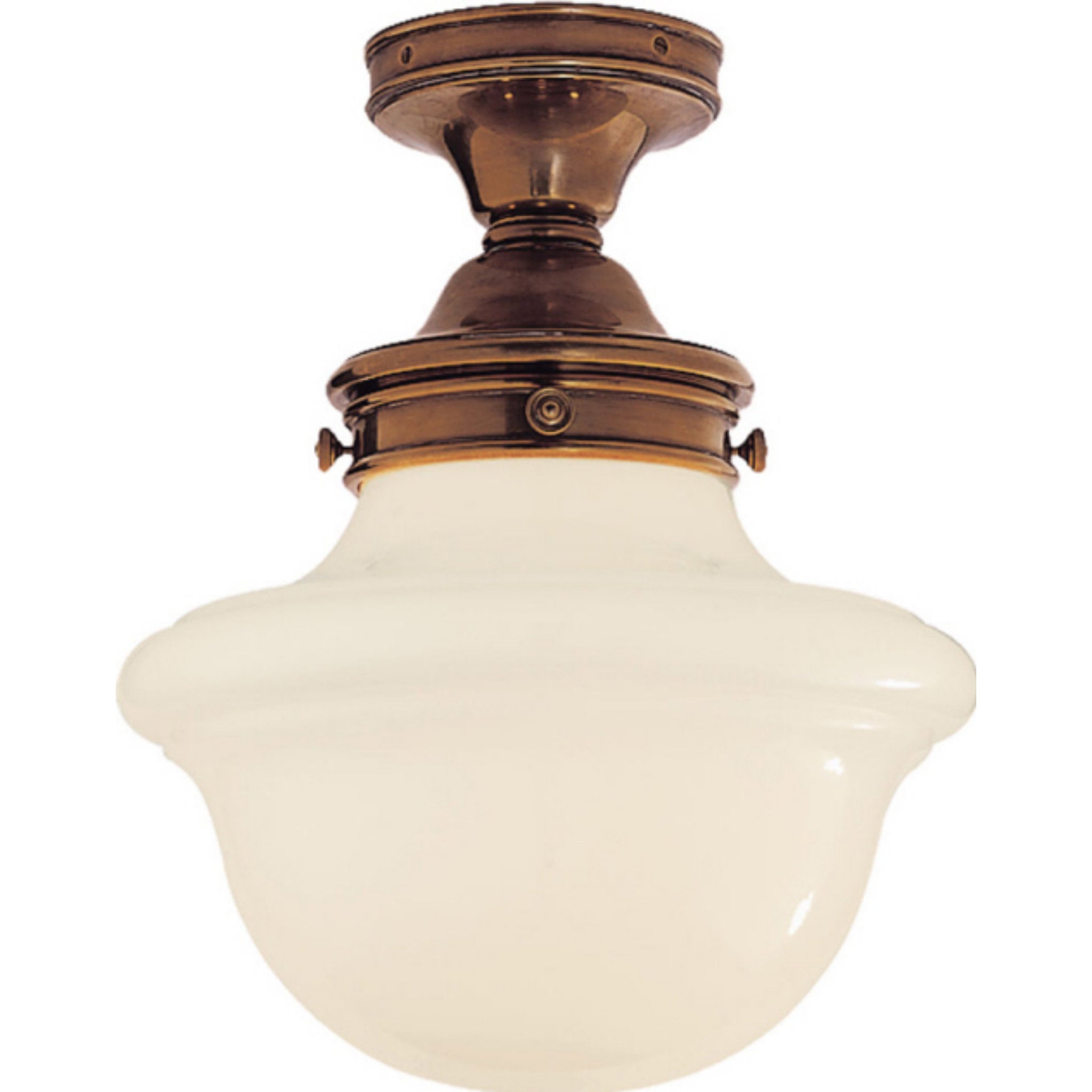 Chapman & Myers Edmond Flush Mount in Hand-Rubbed Antique Brass with White School House Glass Ceiling Light W14.5" x H19"