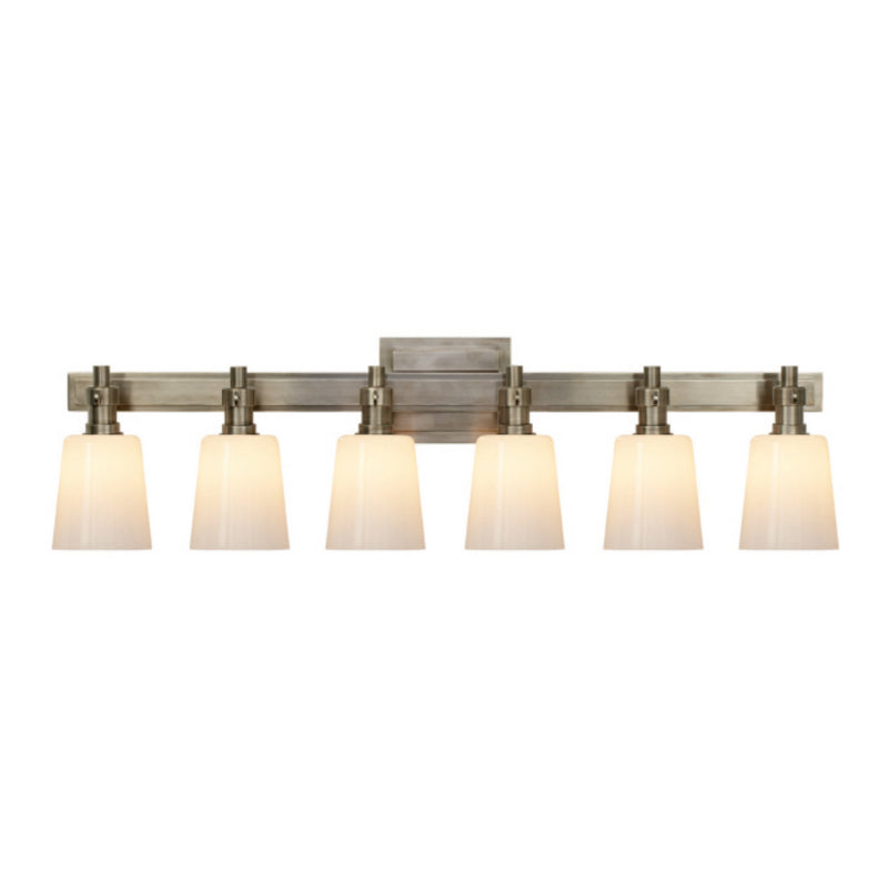 Thomas O'Brien Bryant Six-Light Linear Bath Sconce in Antique Nickel with White Glass Wall Light W29" x H8"