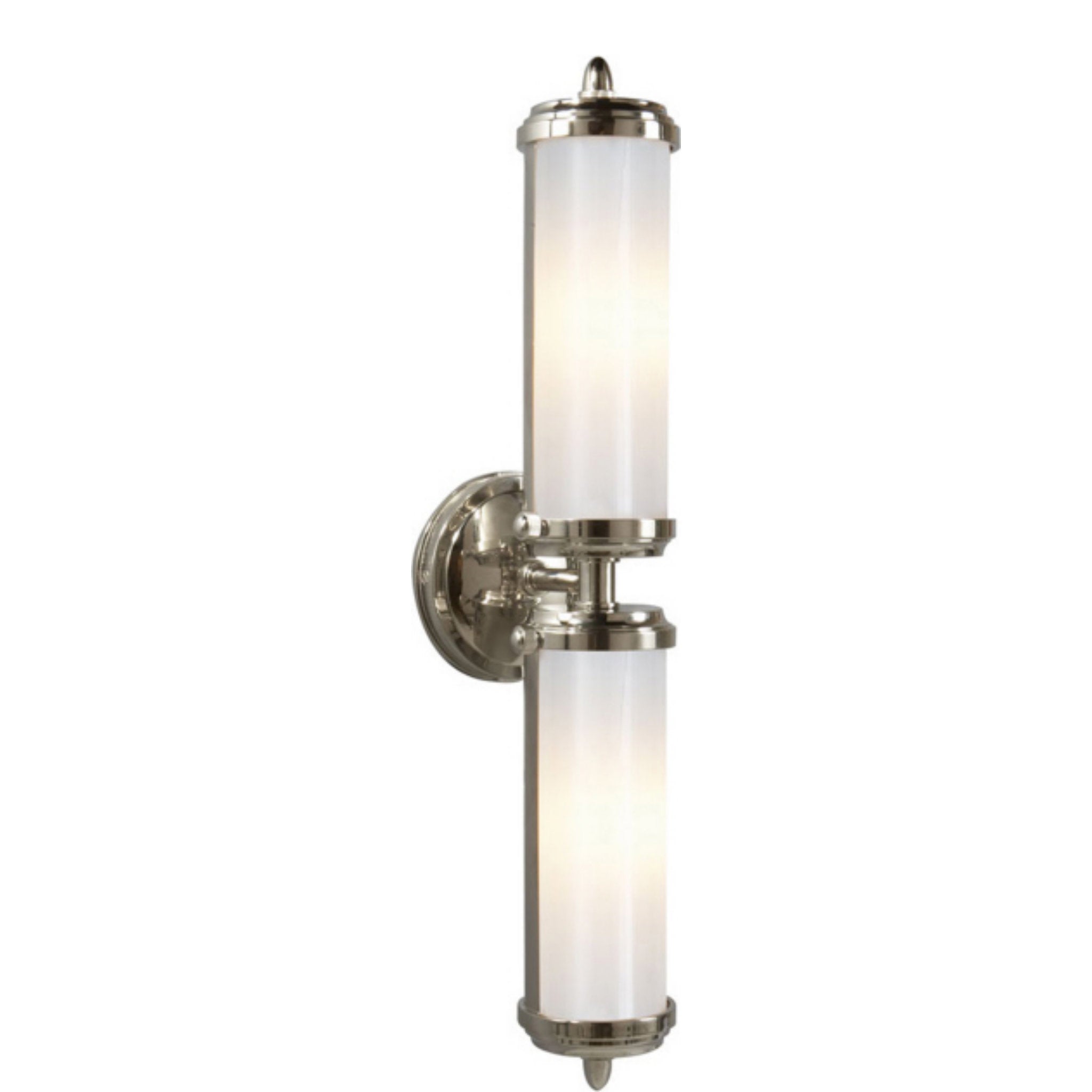 Thomas O'Brien Merchant Double Bath Light in Polished Nickel with White Glass Wall Light W3.75 x H20.25"