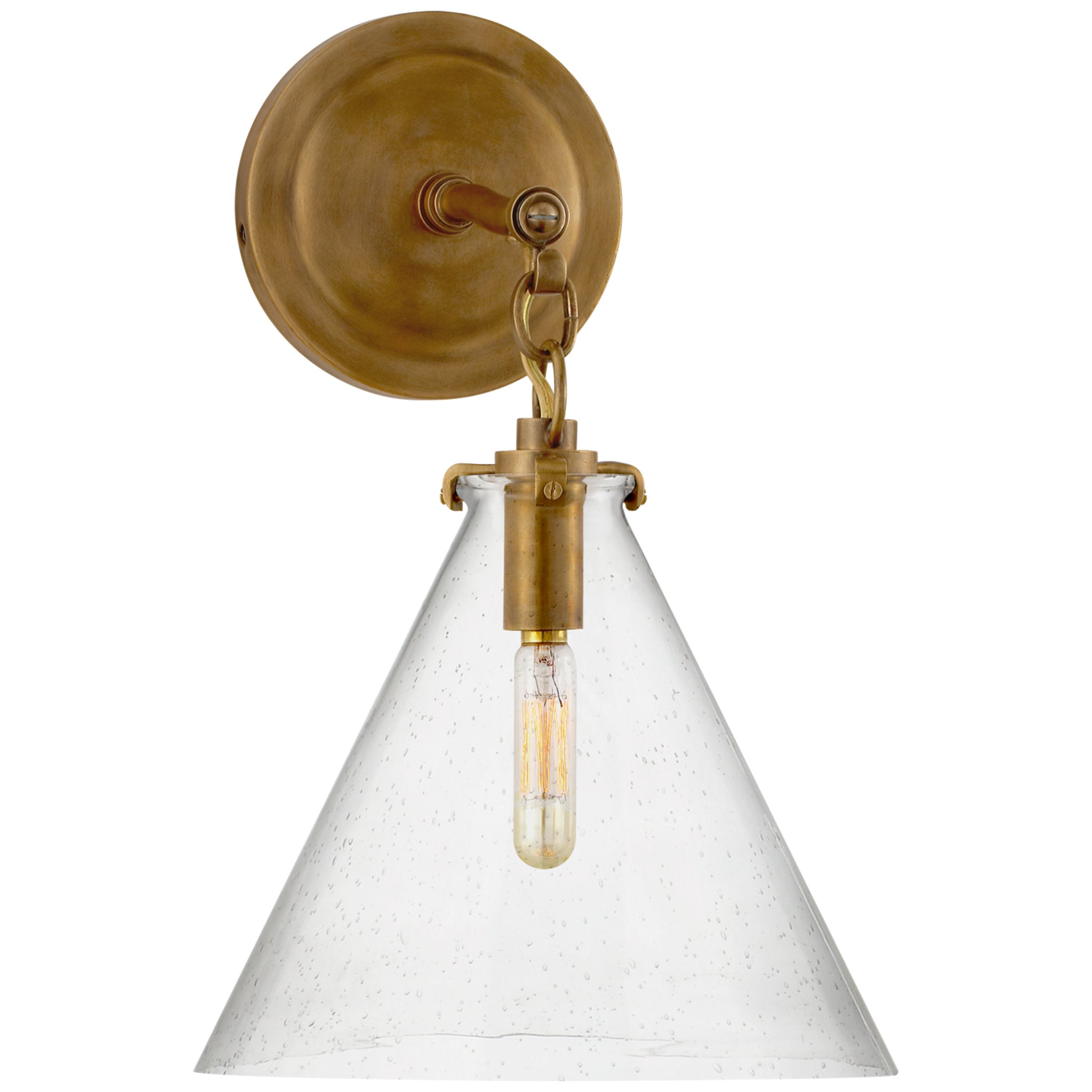 Thomas O'Brien Katie Small Conical Sconce in Hand-Rubbed Antique Brass with Seeded Glass Wall Light W9.25" x H14.5"