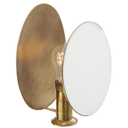 Thomas O'Brien Osiris Single Reflector Sconce in Hand-Rubbed Antique Brass with Linen Diffuser Wall Light W9.25" x H10.25"