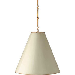 Thomas O'Brien Goodman Large Hanging Lamp in Hand-Rubbed Antique Brass with Antique White Shade Ceiling Light W24"