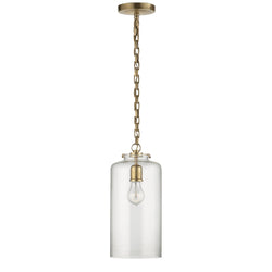 Thomas O'Brien Katie Cylinder Pendant in Hand-Rubbed Antique Brass with Clear Glass Ceiling Light W7" x H15.75"