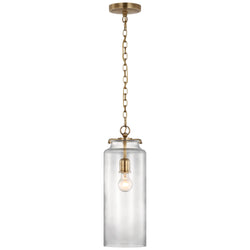 Thomas O'Brien Katie Large Cylinder Pendant in Hand-Rubbed Antique Brass with Clear Glass Ceiling Light W7" x H19.5"