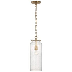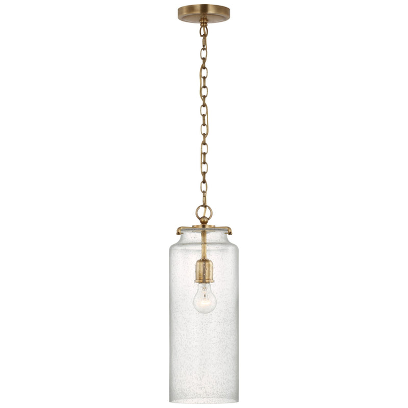 Thomas O'Brien Katie Large Cylinder Pendant in Hand-Rubbed Antique Brass with Seeded Glass Ceiling Light W7" x H19.5"