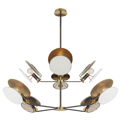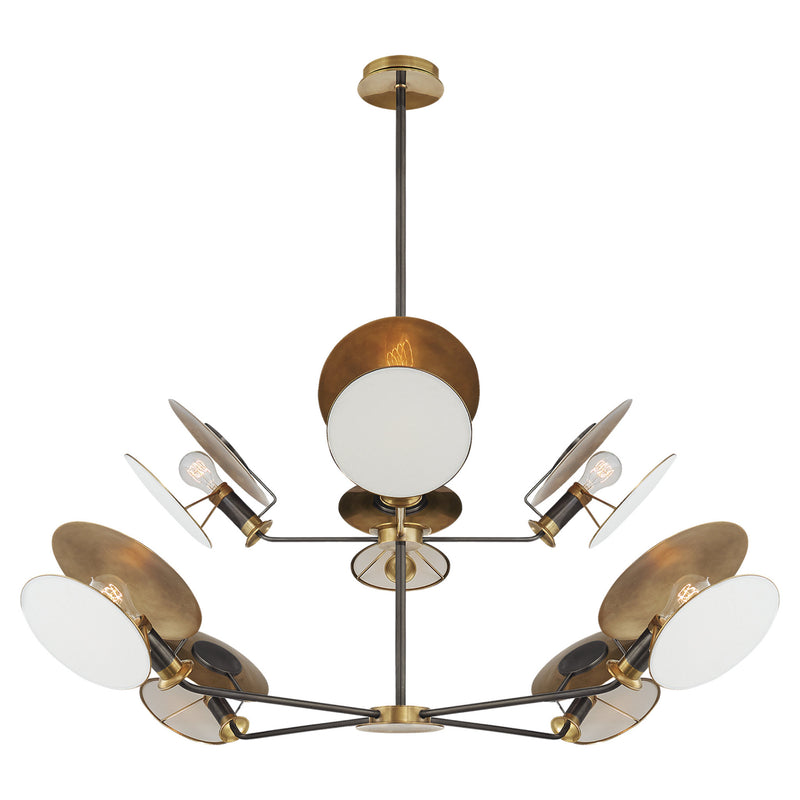 Thomas O'Brien Osiris Large Reflector Chandelier in Bronze and Hand-Rubbed Antique Brass with Linen Diffuser Ceiling Light W54"