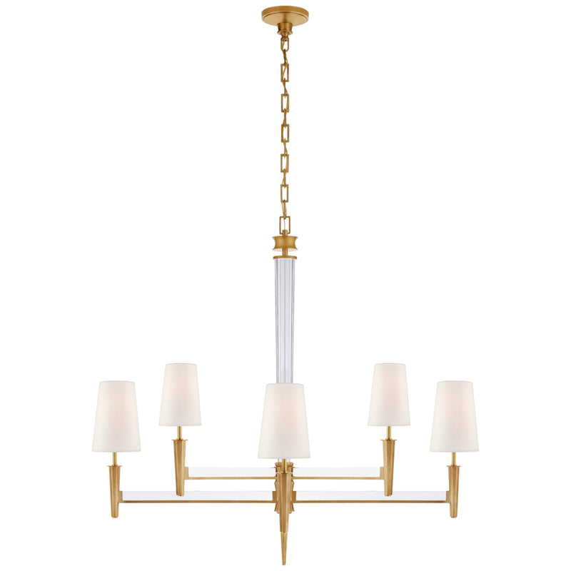 Thomas O'Brien Lyra Two Tier Chandelier in Hand-Rubbed Antique Brass and Crystal with Linen Shades Ceiling Light W42.5" x H39"